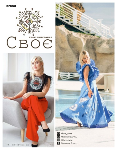 fashion_02-2022 22.02.2022 7:27 Page 18 brand @the_svoe @voliksveta7777 @tvorusvoe Світлана Волик 18 | COSMO LADY | 02-03 | 2022